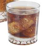 Lift your spirits and impress your guests with a Harley Davidson Bar & Shield Decanter Set. Perfect for casual or formal entertaining the sophisticated styling is sure to be the center of attention. Complete set includes hand blown 25 oz (750 ml) Bar & Shield shaped decanter, two 10 oz. (300 ml) tumbler glasses with etched Bar & Shield logo, and two black leather coasters (4″ diameter) with embossed Bar & Shield logo.