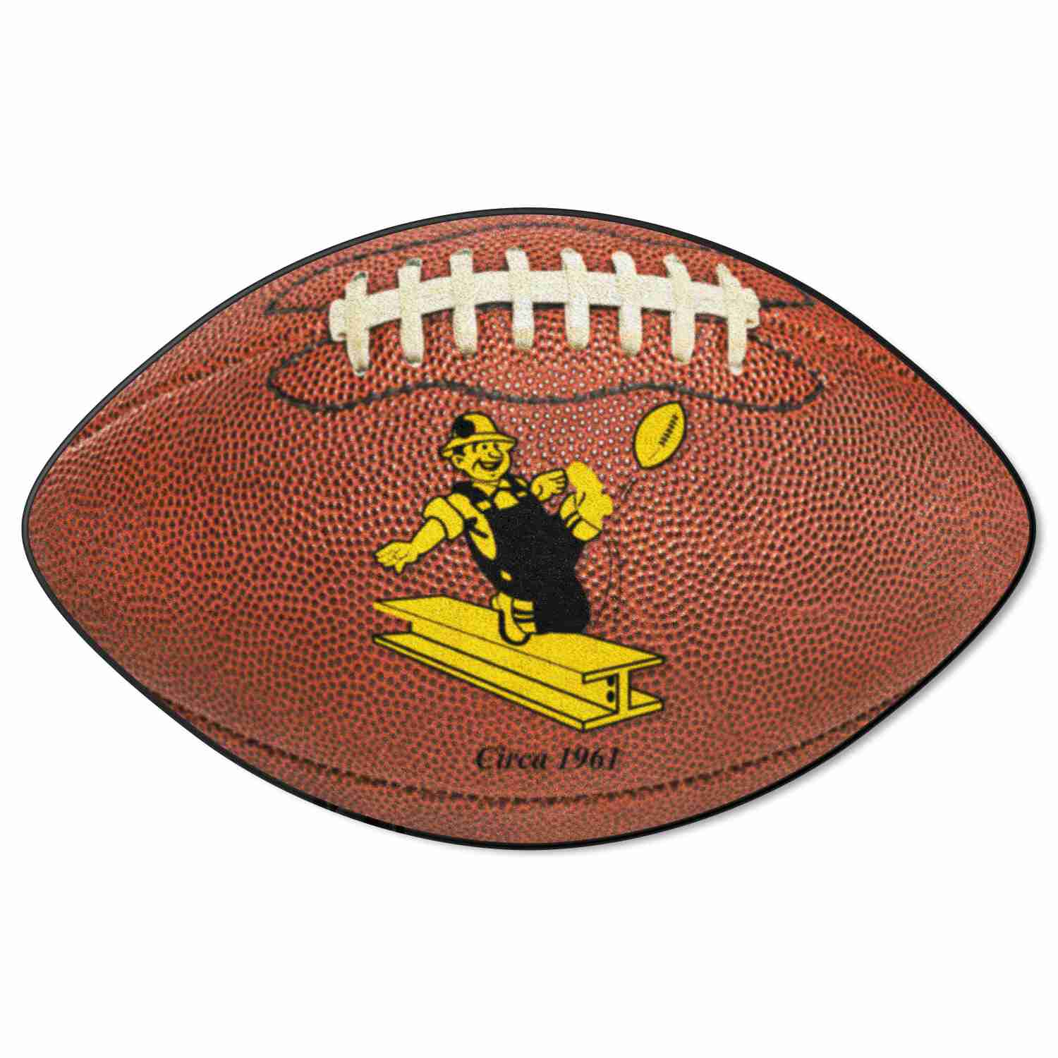 Bring the game in the house officially licensed Football rug. This rug features your favorite NFL team’s vintage logo on a photorealistic background of the ball. At 20 inches tall by 32 inches wide, these rugs are the perfect size to be placed in a door way, in front of a sink, or next to your bed. The face is made from a nylon carpet, so it’s soft to the touch but durable and long lasting. Keep the carpet soft and clean with a regular vacuum. For any stains or dirt, these rugs are machine washable.